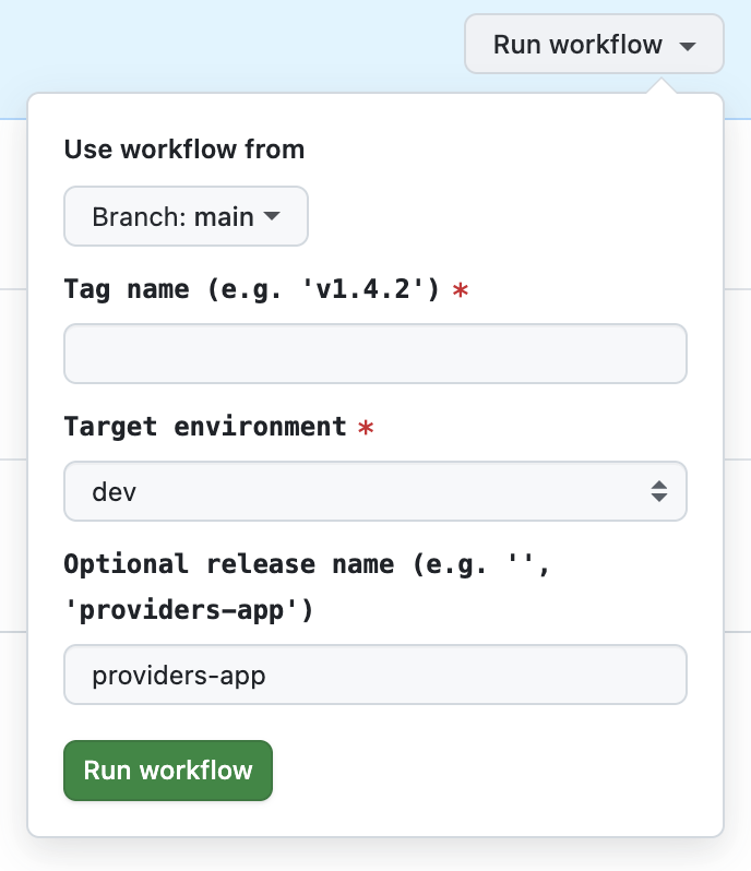 - Tag name: Release tag to deploy (e.g.,