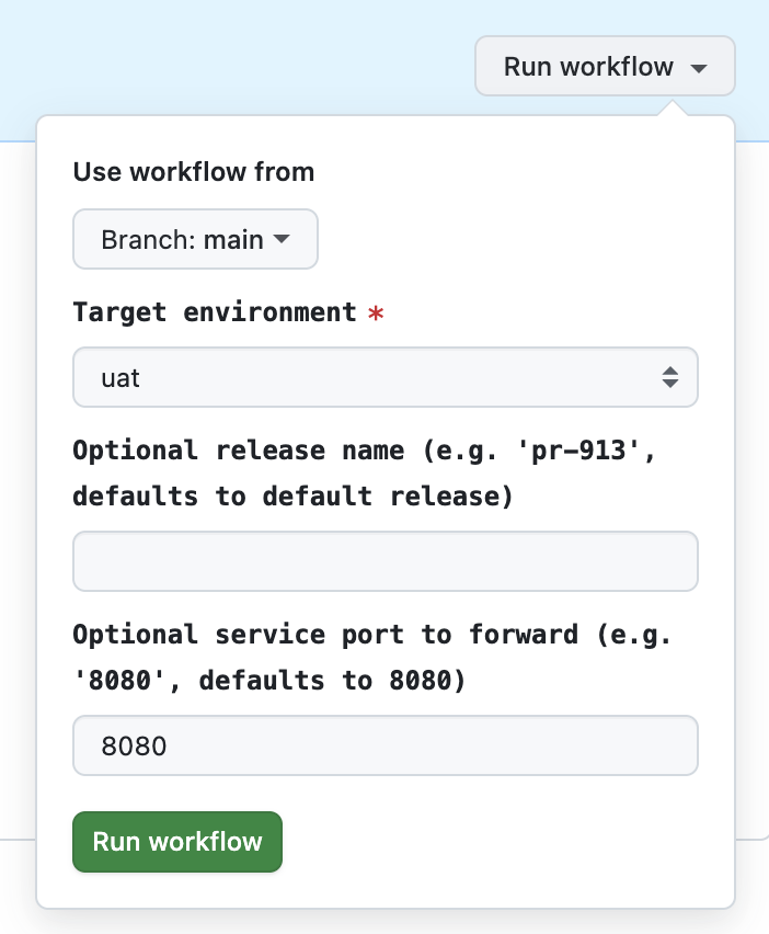 pr-<your PR number>(e.g.pr-913) - Optional service port to forward: Leave as